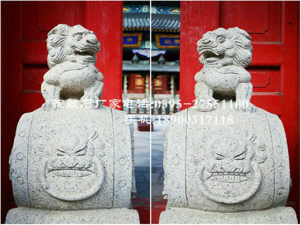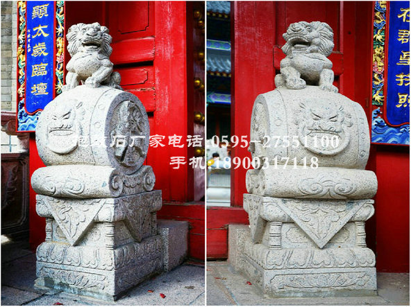 傳統(tǒng)建筑門前經常可以看到一對石制的抱鼓石,它是中國傳統(tǒng)建筑的主要構件之一,是古代房主身份、地位和房屋等級象征的裝飾件,它與門檻、門扇、門框、門簪一起產生古樸典雅的藝術效果。相傳古代打仗凱旋的將領為了顯耀其赫赫戰(zhàn)功,就將戰(zhàn)鼓放置在自家門口。后來,就慢慢地演變成以抱鼓石來代替戰(zhàn)鼓的做法。抱鼓石有擊鼓、升堂、聽政之意,一般只有衙門或官宦之宅門方可放置。 抱鼓石的造型有方和圓兩種,由兩部分組成,下部由須彌座,上部為鼓形,飾以花紋浮雕。此外,抱鼓石還是“非富即貴”的門第符號,是最能標志屋主等級差別和身份地位的裝飾品。