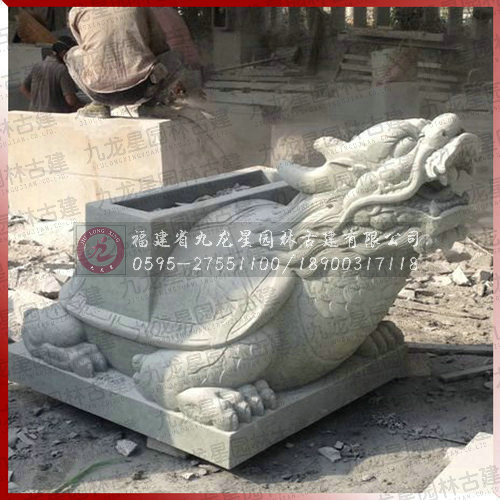 人們參觀游覽中國的陵墓、廟宇和園林時,常常會看到一座座石龜馱碑,它們的造型古樸、碑體細滑,有的碑文刻制精致,字字有姿,為保護碑文,以免風雨,有的還蓋有碑亭。 石龜馱碑主要由碑首、碑身和碑座三部分組成。由于碑首常以螭首雕飾,故又稱“螭首龜趺”。“螭首”是龍的九子之一,而人們常誤稱它是龍頭。 中國在石碑上刻文由來已久。凡皇帝書寫的御碑都由石龜做底座。雖則有些碑文是歷代社會名流或文臣為皇上代寫的,但碑文卻記載首帝王對重大政治歷史事件的論述,其內容無非是為帝王歌功頌德。 傳說馱碑的石龜是龍的第九子。它力大無窮,能馱三山五岳,常在江海里興風作浪。大禹治水時,常讓它推山挖溝,為治水做出過貢獻。治好洪水后,大禹怕龍子惡習不改,于是便用一塊特大的石塊壓在它的背上,石碑上刻有治水的功績,這樣它永遠也不能亂動了。可見,龍子本不屬龜類,只因叫的人多了,也就成了“龜”,并一直沿稱下來。