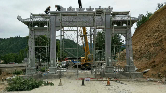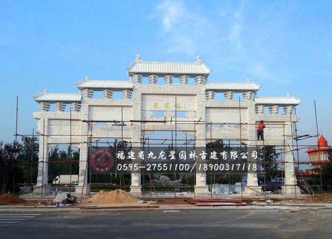 石雕牌坊,也叫石雕牌樓、山門,漢族特色建筑文化之一。最早見于周朝,最初用于旌表節(jié)孝的紀念物,后來在園林、寺觀、宮苑、陵墓和街道均有建造,北京是中國牌樓最多的城市。石雕牌坊用各種石料來進行塑造,創(chuàng)造出具有一定空間的可視、可觸的建筑裝飾物,借以反映社會生活、表達意義。