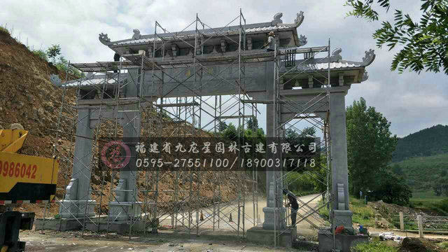 牌坊作為中國傳統(tǒng)的建筑模式,其擁有更多自己的風格與特色,成為外國學者們研究中國建筑文化的主要途徑和方式。傳統(tǒng)石牌坊設計形式多樣,傳承到如今,牌坊更多是發(fā)揮其標志性作用,在新農(nóng)村建設中普遍應用。