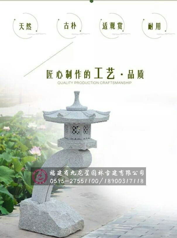 石燈籠最早雛形是中國國供佛時(shí)點(diǎn)的燈,也就是供燈的形式。這種形式經(jīng)朝鮮傳入日本,其例子如平等院鳳凰堂佛前的供燈,它表明“立式光明”的意思。