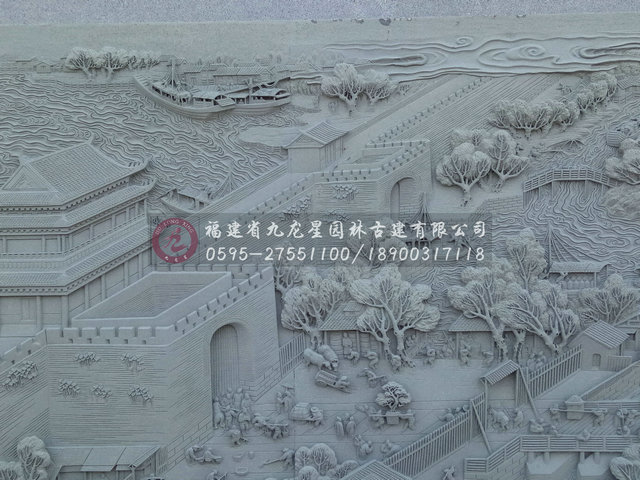 浮雕作為石雕藝術(shù)中的一種造型語言和形式,有它特有的塑造方法,它是在有限的塑造空間里對(duì)自然物象進(jìn)行體積上的合理壓縮,并通過透視和錯(cuò)覺等方法向人們展示較抽象的空間效果。由于浮雕是在第三度空間上經(jīng)過了壓縮,立體的形象被壓扁,形體上也見薄,所以又往往容易被人錯(cuò)誤地認(rèn)為浮雕就是圓雕的一半。