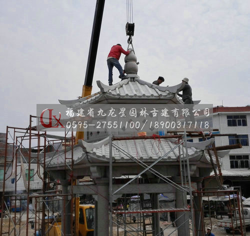 九龍星園林古建石材六角亭石亭子安裝現場