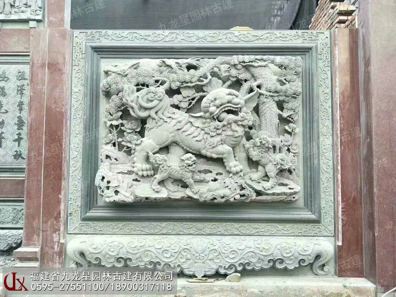 潮汕祠堂門面獅象浮雕圖 浮40公分