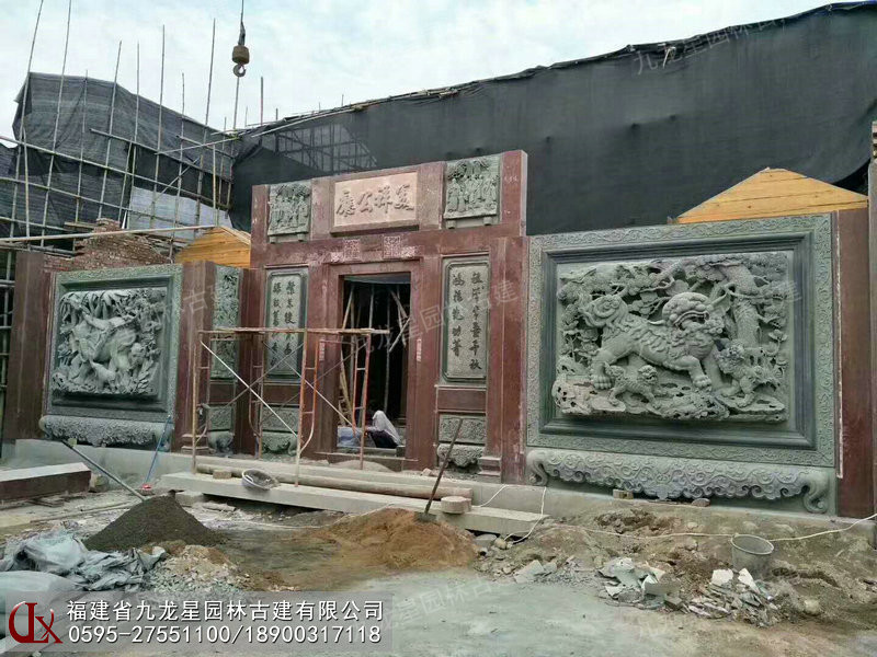 寺廟墻面浮雕壁畫安裝現場 九龍星園林古建