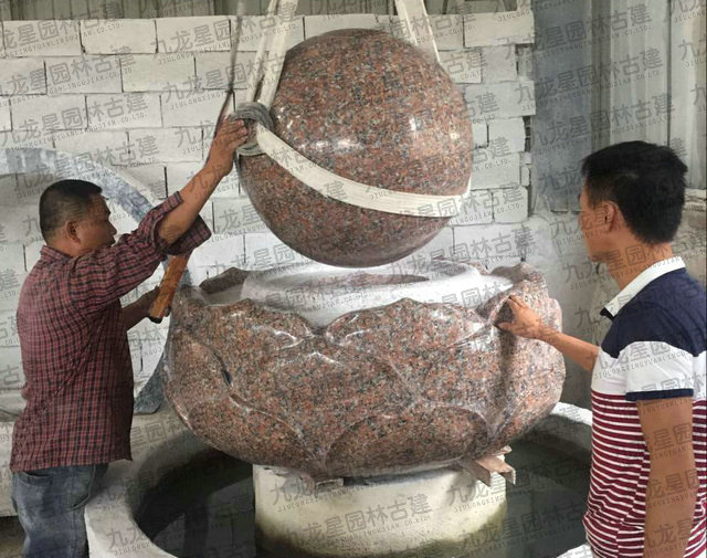 紅色石材風水球寓意紅紅火火,楓葉紅石雕風水球流水噴泉適宜商場會所,酒店賓館,公司企業風水招財石雕裝飾擺設。