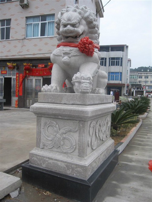 作為我國歷史上封建主義社會發(fā)展后期階段的元明清三代。其中元朝的皇室帝王不提倡象生儀衛(wèi),所以也就沒有了陵墓石獅這么一說。但是中國歷來對佛道等宗教信仰的重視,為石獅的應(yīng)用也創(chuàng)造了有利的條件。而明朝石獅子,特別考究。在宮殿、府邸等一些建筑群中,石獅子被雕刻得莊重威嚴(yán),體型巨大而且莊重。作為皇家的石獅,更加講究,從取材到雕刻,再到裝飾無不體現(xiàn)出皇家的威儀。這時(shí)候的民間石獅子則顯得多彩多樣,活潑生動(dòng),充滿了民間生活的元素。