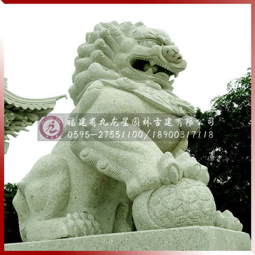 獅子并非我國土生土長的,傳說它是在東漢時期由安息國(今伊朗)傳入我國的。獅子被視為猙獰之獸,在中國傳統(tǒng)建筑中,人們根據(jù)它的兇猛性格,設(shè)計出石獅子雕塑,并賦予它以特殊的使命——護衛(wèi)。所以,今天我們看到在古代陵墓和重要建筑物的大門兩旁,甚至房梁、屋頂上,都有獅子雕塑,它們守護著主人并顯示著主人的威勢。