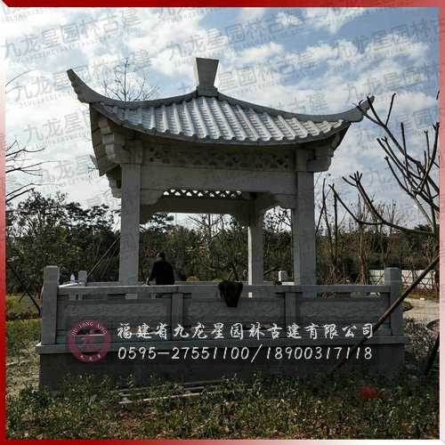 石雕涼亭安裝地點:福建泉州晉江 石雕涼亭安裝時間:2017.01 石雕涼亭材質用料:張坂石 石雕涼亭設計尺寸:石雕涼亭總高5.2m配套板材、欄桿