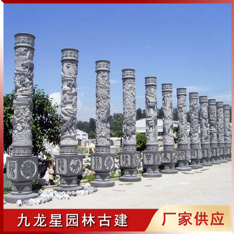 石材圓柱 十二生肖石雕文化柱 景區公園裝飾擺件