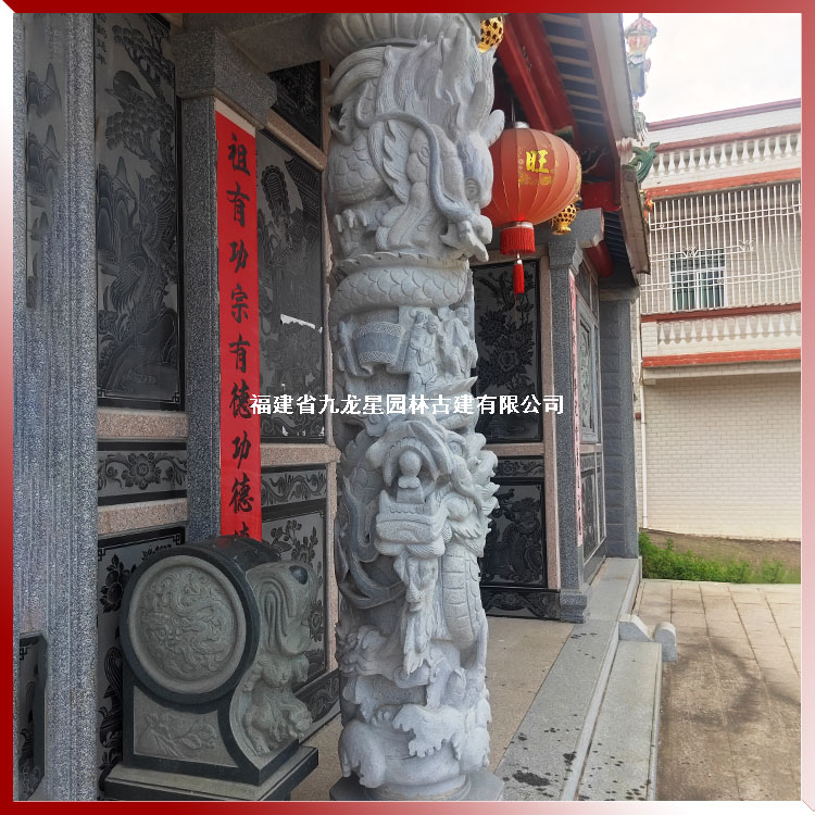 石雕龍柱供應 祠堂門口裝飾石雕龍柱樣式