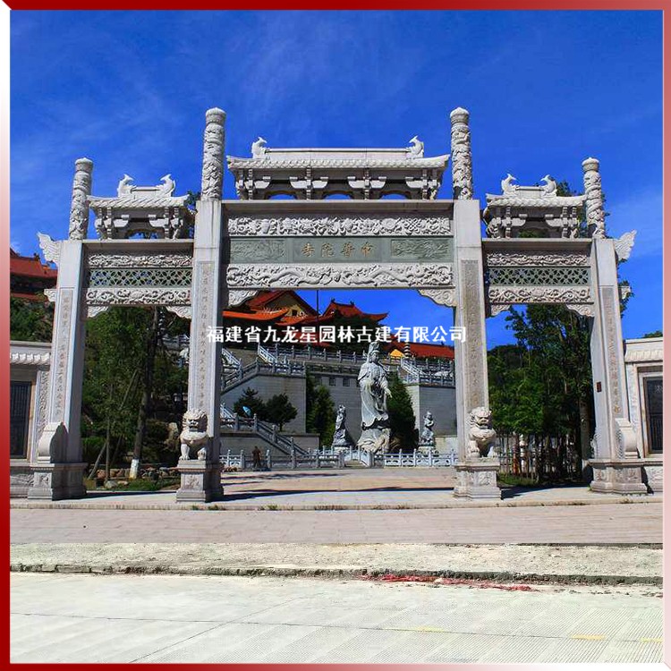 寺廟石雕山門牌坊生產加工,就到九龍星園林古建。常年承接各種造型石牌坊加工制作,石雕牌坊案例經驗豐富。公司坐落于“中國石雕之都”福建省惠安縣,是一家集石材創作、加工、安裝、銷售于一體的石材石雕專業生產企業。提供豐富的石雕山門牌坊相關商品信息,包括石雕牌坊設計、價格、批發,涵蓋石雕牌坊圖片、型號、規格參數,支持來圖來樣定做加工。