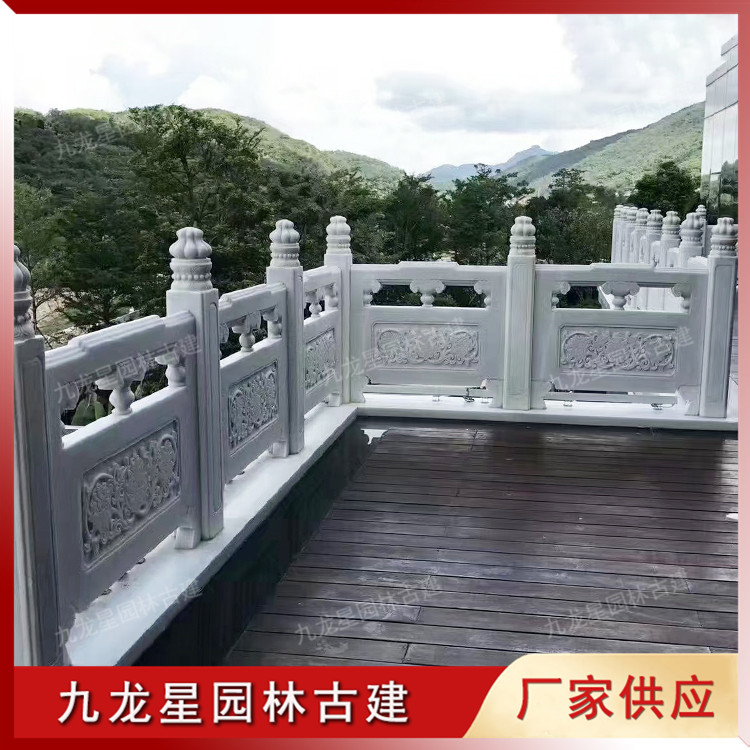 九龍星園林古建,供應各種石材石料制作的石欄桿,常用到的有青石欄桿、花崗石欄桿、漢白玉欄桿。石欄桿樣式豐富,有線雕型欄桿、浮雕型欄桿、幾何型欄桿、立體雕塑欄桿,適用于不同場景美化裝飾。公司坐落于“中國石雕之都”福建省惠安縣,是一家集石材創作、加工、安裝、銷售于一體的石材石雕生產企業?;莅彩裨搭^廠家,價位合理,品質保證,支持來圖來樣定制加工。