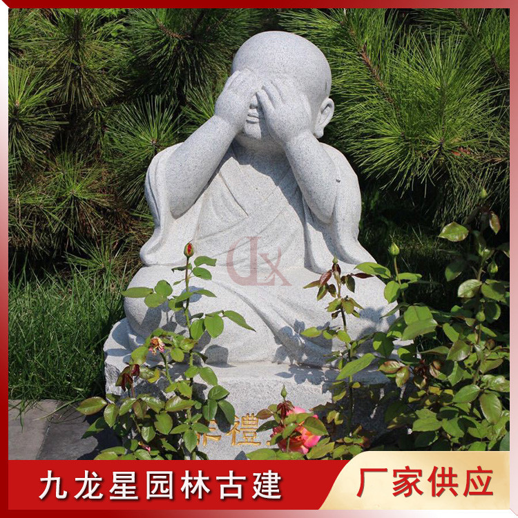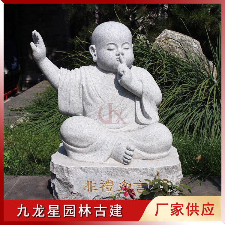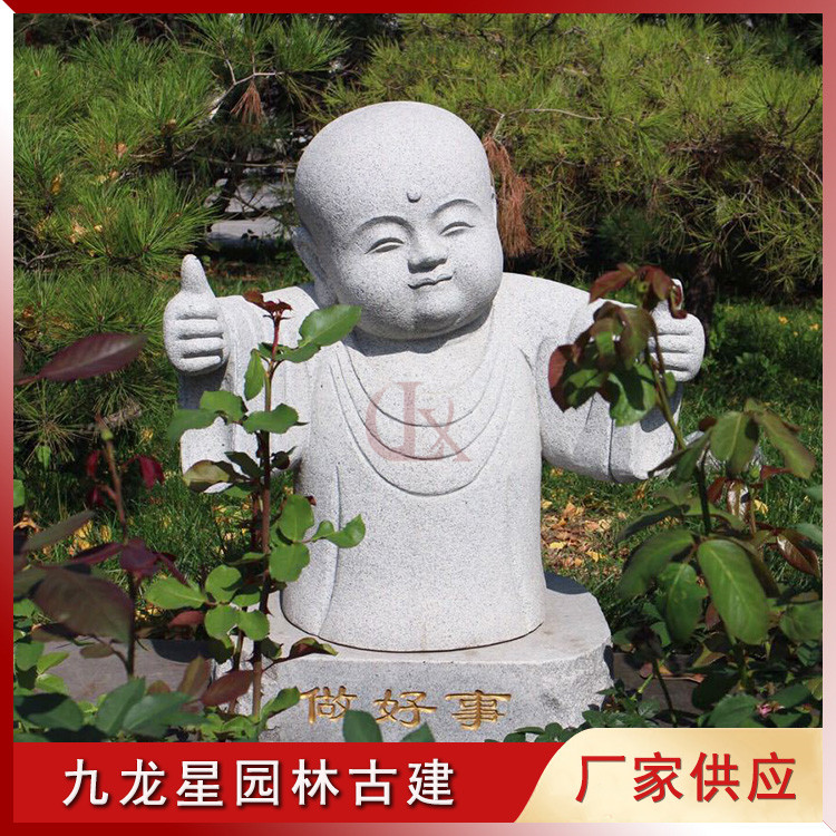 一尊尊石雕小沙彌童子錯(cuò)落有致地?cái)[放在寺院的庭院內(nèi),既增添了景觀的觀賞性,又讓人們可以更加輕松地接觸佛教文化,不會(huì)那么拘束。