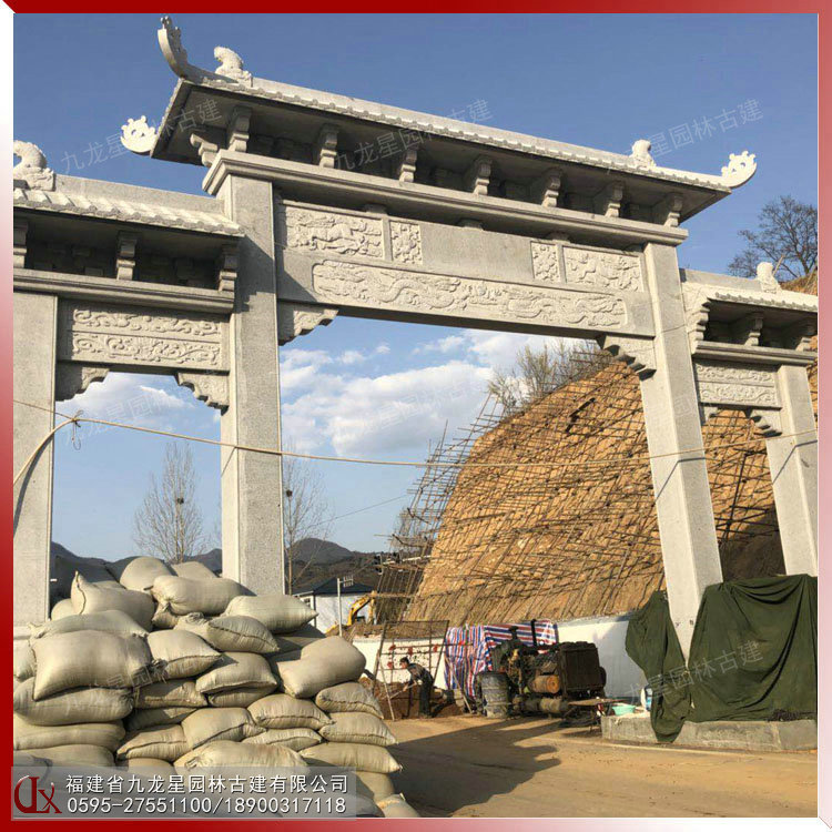 景區(qū)三門五樓石雕牌坊圖片
